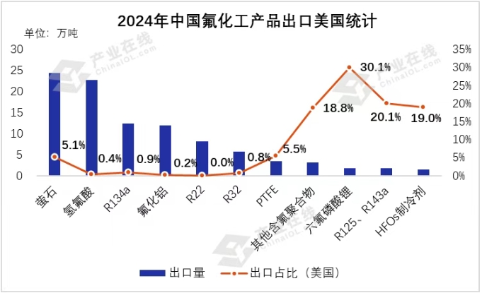 來(lái)源:氟化工產(chǎn)業(yè)圈(公眾號(hào)) 4月2日: 美國(guó)宣布對(duì)所有貿(mào)易伙伴設(shè)立10%的“最低基準(zhǔn)關(guān)稅”,并對(duì)六十多個(gè)經(jīng)濟(jì)體補(bǔ)充了額外的關(guān)稅,其中對(duì)中國(guó)實(shí)施34%的對(duì)等關(guān)稅,對(duì)歐盟實(shí)施20%的對(duì)等關(guān)稅,對(duì)日本實(shí)施24%的對(duì)等關(guān)稅。 4月8日: 美國(guó)政府宣布對(duì)中國(guó)輸美商品征收“對(duì)等關(guān)稅”的稅率由34%提高至84%,加上此前已經(jīng)征收的20%關(guān)稅,累計(jì)關(guān)稅稅率提高至104%。 4月9日: 特朗普宣布,對(duì)從中國(guó)進(jìn)口的商品征收的關(guān)稅提高到125%,立即生效。此時(shí),美國(guó)對(duì)中國(guó)商品實(shí)際加征的總關(guān)稅稅率為145%,125%只是“對(duì)等關(guān)稅”部分。 4月2日以來(lái),美國(guó)特朗普政府升級(jí)全球關(guān)稅戰(zhàn),呈現(xiàn)“基準(zhǔn)關(guān)稅+對(duì)等關(guān)稅+額外加征”三重疊加效應(yīng),其中中國(guó)輸美商品綜合稅率被一路加征。就氟化工領(lǐng)域來(lái)看,美國(guó)“對(duì)等關(guān)稅”對(duì)我國(guó)產(chǎn)品出口的影響較為復(fù)雜,具體影響如下: 部分產(chǎn)品被豁免: 美國(guó)公布的加征對(duì)等關(guān)稅產(chǎn)品豁免清單中,螢石(25292100、25292200)、氫氟酸(28111100)等10余種氟化工產(chǎn)品被豁免(具體豁免清單見(jiàn)本文附件)。這是因?yàn)槲炇鳛閼?zhàn)略資源,美國(guó)本土產(chǎn)能有限,而又在信息技術(shù)、新能源等領(lǐng)域?qū)ζ溆袕V泛需求,難以擺脫對(duì)外部供應(yīng)鏈的依賴(lài)。 出口美國(guó)量有限: 中國(guó)氟化工產(chǎn)品出口美國(guó)的體量較小,據(jù)產(chǎn)業(yè)在線(xiàn)統(tǒng)計(jì)顯示,2024年中國(guó)出口至美國(guó)的主要含氟產(chǎn)品共3.5萬(wàn)噸左右,占此部分產(chǎn)品總出口的3.6%。通過(guò)上圖不難發(fā)現(xiàn),在中國(guó)出口量較大的產(chǎn)品中,出口往美國(guó)的比例相對(duì)較低。盡管部分產(chǎn)品出口往美國(guó)的占比較高,但我國(guó)此類(lèi)產(chǎn)品的總出口量相對(duì)較少。以此來(lái)看,美國(guó)加征關(guān)稅影響對(duì)于國(guó)內(nèi)制冷劑直接出口并影響甚微。此前已征收高額反傾銷(xiāo)、反補(bǔ)貼稅: 在美國(guó)征收“對(duì)等關(guān)稅”前,從中國(guó)出口美國(guó)的HFCs產(chǎn)品已被征收高額的反傾銷(xiāo)、反補(bǔ)貼關(guān)稅,且與301關(guān)稅疊加征收。如美國(guó)對(duì)我國(guó)出口的R134a、R125、R32及其混配物已征收“反傾銷(xiāo)稅、反補(bǔ)貼稅(101.82%-285.73%不等)+關(guān)稅”,在加征對(duì)等關(guān)稅前就已承擔(dān)畸高的綜合稅率,出口量銳減,所以此次關(guān)稅政策對(duì)這些產(chǎn)品的直接影響有限。下游產(chǎn)品需求受抑制: 盡管部分氟化工產(chǎn)品本身不在加征關(guān)稅范圍內(nèi),但氟化工下游產(chǎn)品如家用空調(diào)、商用制冷、汽車(chē)等產(chǎn)品被納入在內(nèi)。美國(guó)加征關(guān)稅會(huì)影響全球經(jīng)濟(jì)及終端需求,通過(guò)產(chǎn)業(yè)鏈上下游傳導(dǎo),進(jìn)而抑制下游產(chǎn)品售前及售后市場(chǎng)對(duì)氟化工產(chǎn)品的需求。但據(jù)產(chǎn)業(yè)在線(xiàn)監(jiān)測(cè)數(shù)據(jù)顯示,自2018年美國(guó)首次加征25%關(guān)稅后,中國(guó)對(duì)美家用空調(diào)出口連年下滑。至2024年,對(duì)美出口占比已從2018年的24%降至不足10%。企業(yè)也將重心逐步轉(zhuǎn)向新興市場(chǎng),分散風(fēng)險(xiǎn)。當(dāng)前,中國(guó)對(duì)美出口量占比已從2015年的19.2%,降至2024年的7.8%;對(duì)美出口額的占比,已從2015年的13.5%,降至2024年的6.1%。且為應(yīng)對(duì)關(guān)稅與全球化趨勢(shì),中國(guó)空調(diào)企業(yè)加快在泰國(guó)、印尼等地設(shè)廠(chǎng),通過(guò)“零部件出口+本地組裝”或“轉(zhuǎn)口貿(mào)易”方式規(guī)避關(guān)稅。因此,鑒于中國(guó)出口至美國(guó)的相關(guān)產(chǎn)品在其市場(chǎng)中所占份額較小,且制冷劑下游產(chǎn)品具有剛需特性以及生活消費(fèi)品屬性,需求受抑制的程度相對(duì)可控。 影響產(chǎn)業(yè)高端化進(jìn)程: 中國(guó)高端氟化工產(chǎn)品如部分電子級(jí)或高性能的氟聚合物氟化液、含氟電子化學(xué)品對(duì)美進(jìn)口依賴(lài)度較高。美國(guó)加征關(guān)稅在一定程度上會(huì)影響這些高端產(chǎn)品的進(jìn)口,不過(guò)也為國(guó)內(nèi)企業(yè)推進(jìn)氟化工產(chǎn)品國(guó)產(chǎn)化提供了機(jī)遇,促使國(guó)內(nèi)企業(yè)加大研發(fā)投入,提高高端產(chǎn)品的自給率,加速產(chǎn)業(yè)高端化進(jìn)程。 美國(guó)宣布開(kāi)征“對(duì)等關(guān)稅”后,各國(guó)政府和金融市場(chǎng)反應(yīng)強(qiáng)烈,我國(guó)接連發(fā)布多項(xiàng)對(duì)美反制措施。由于我國(guó)氟化工原材料出口美國(guó)占比較低,且被納入豁免清單,因此所受影響較小。而我國(guó)第二代、第三代氟制冷劑已實(shí)行生產(chǎn)配額制,部分產(chǎn)品供不應(yīng)求,盡管存在高關(guān)稅,中國(guó)頭部企業(yè)憑借全球80%以上的供應(yīng)占比和定價(jià)權(quán),仍能通過(guò)出口價(jià)格調(diào)整轉(zhuǎn)嫁關(guān)稅成本。同時(
